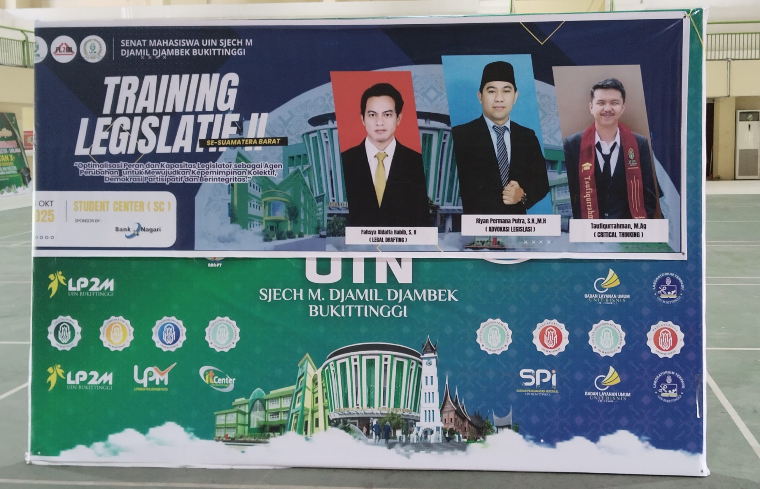Bukittinggi – Suasana di Student Center Universitas Islam Negeri (UIN) Sjech M. Djamil Djambek Bukittinggi terasa hangat pada Minggu pagi, 5 Oktober 2025. Di tengah deretan kursi yang dipenuhi mahasiswa berpakaian rapi, satu sosok tampil dengan semangat yang khas: Dr (c). Riyan Permana Putra, S.H., M.H.